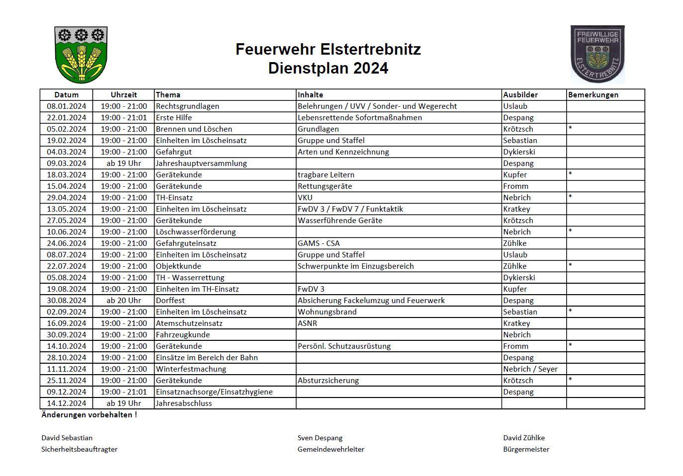 Dienstpläne der Feuerwehr Elstertrebnitz 2023